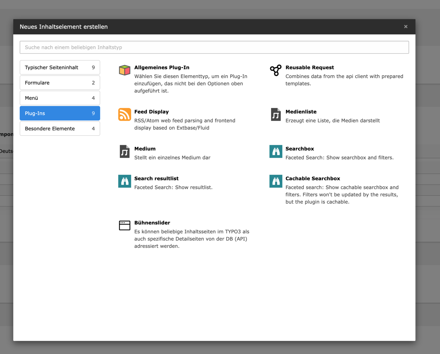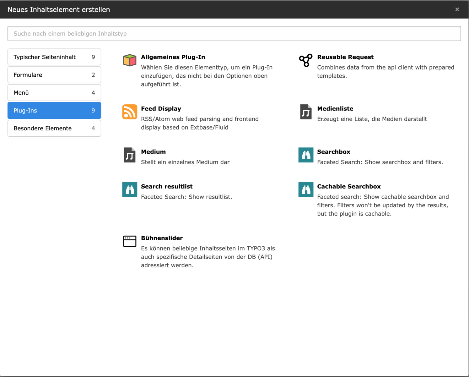 - Inhaltselemente hinzufügen