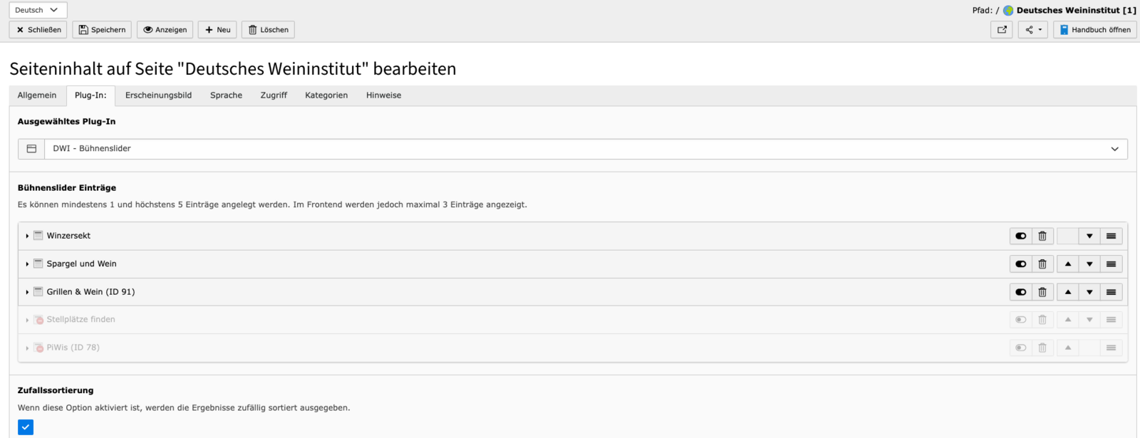 Anzeigen: stellt die Frontend-Ansicht im Inhaltsbereich des Backendes dar