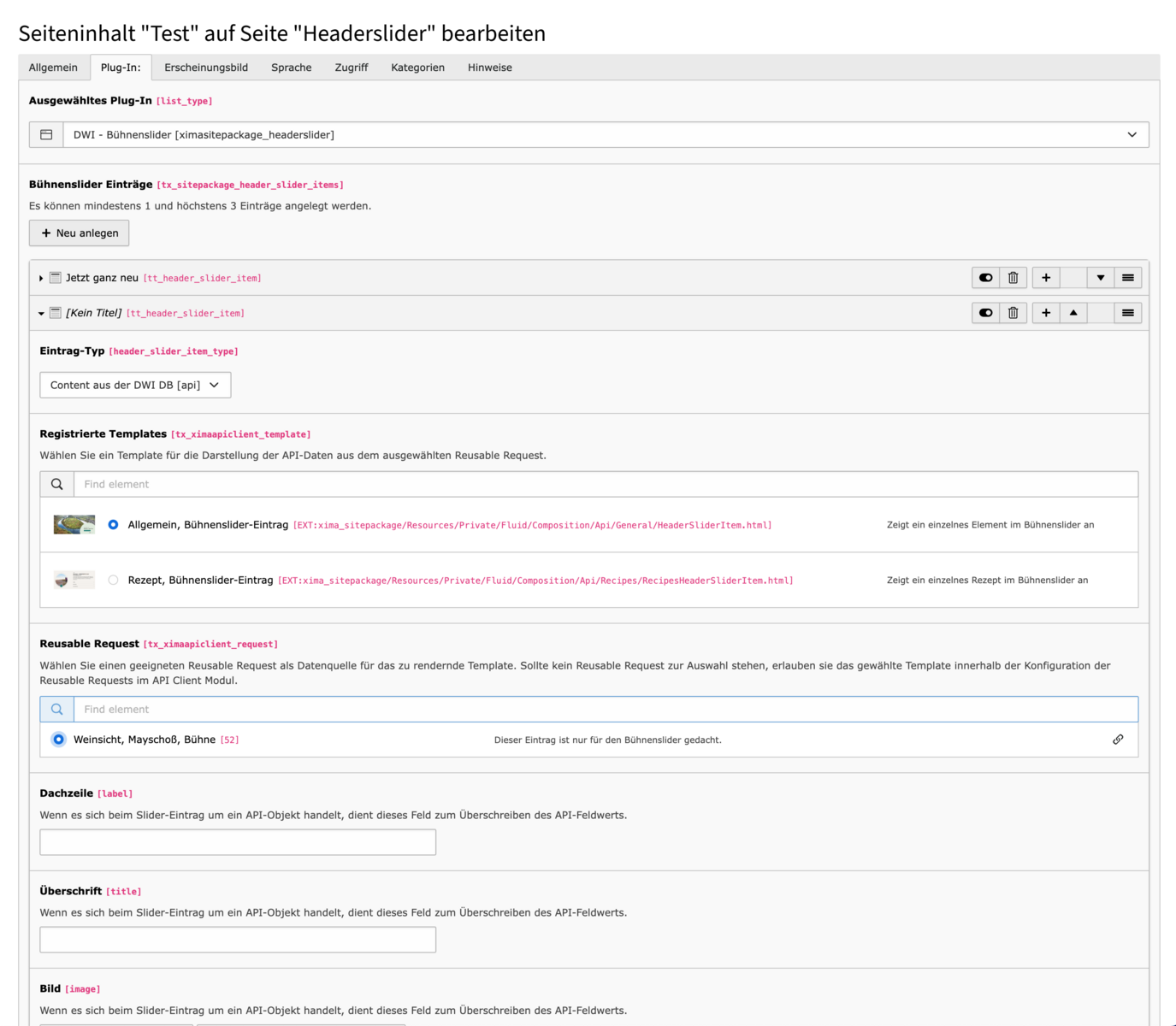 - Überschrift – Die Hauptüberschrift der Bühne (Pflichtfeld)