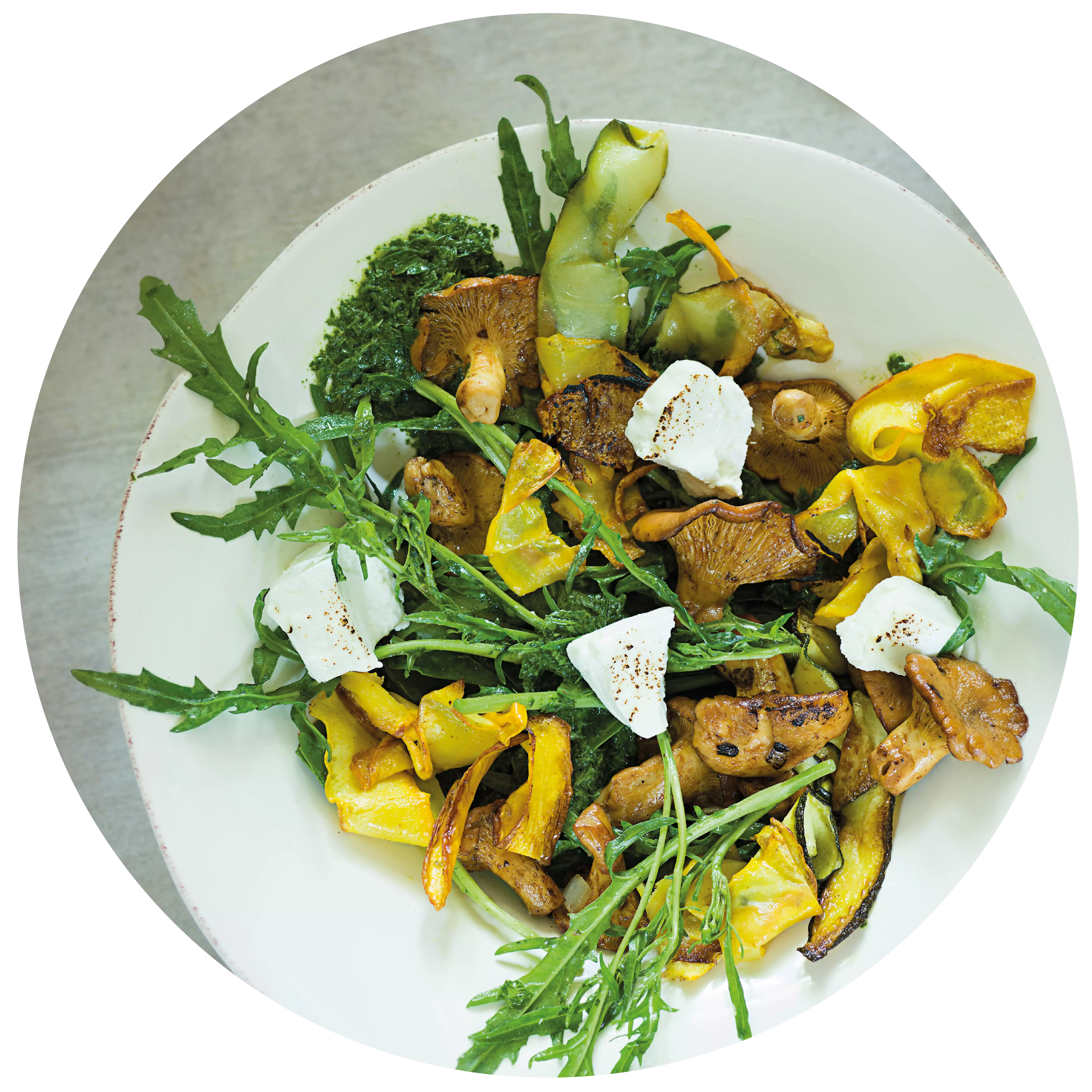 mit Ziegenkäse Zucchini-Pfifferling-Salat