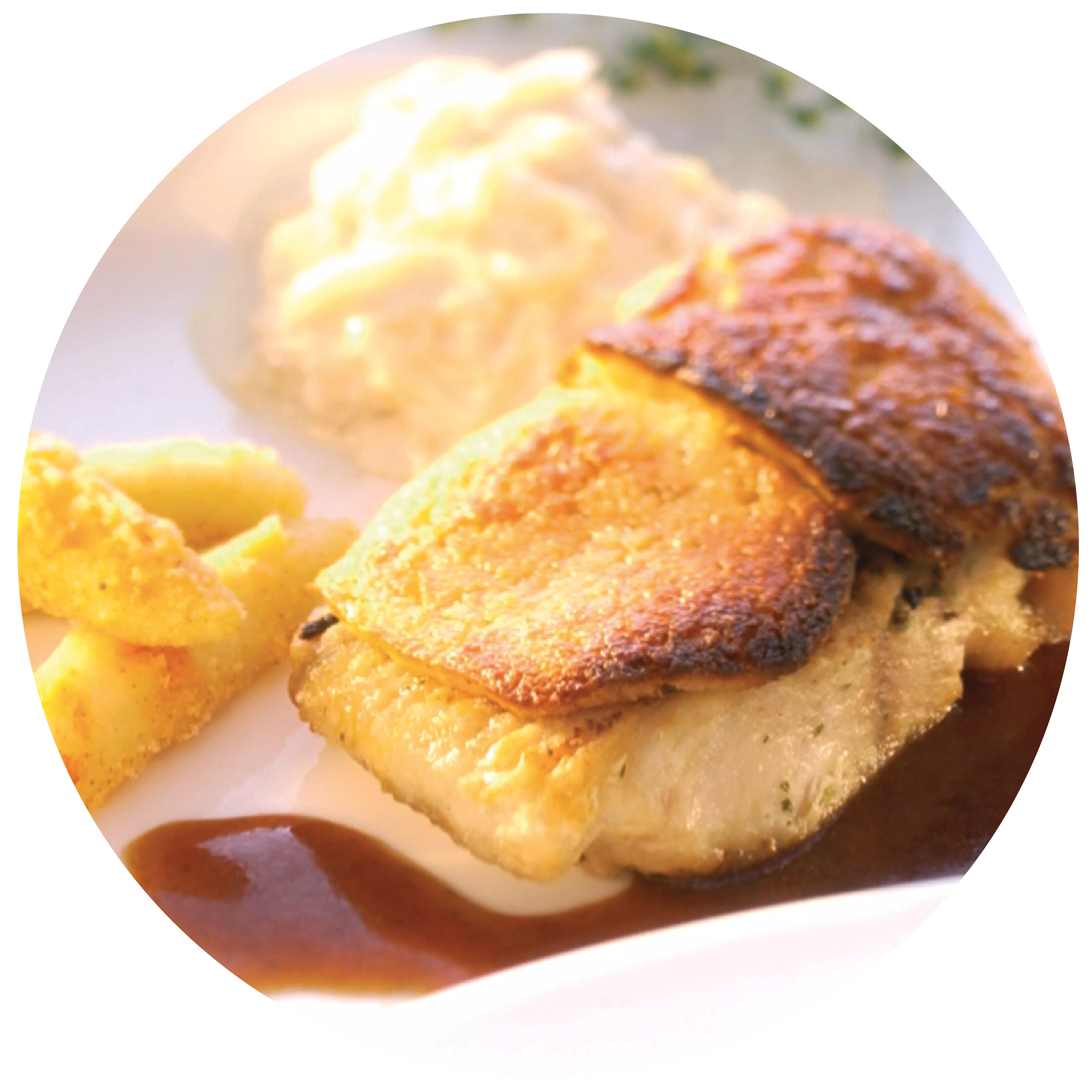auf Weißburgunderkraut Wallerfilet in der Meerrettichkruste